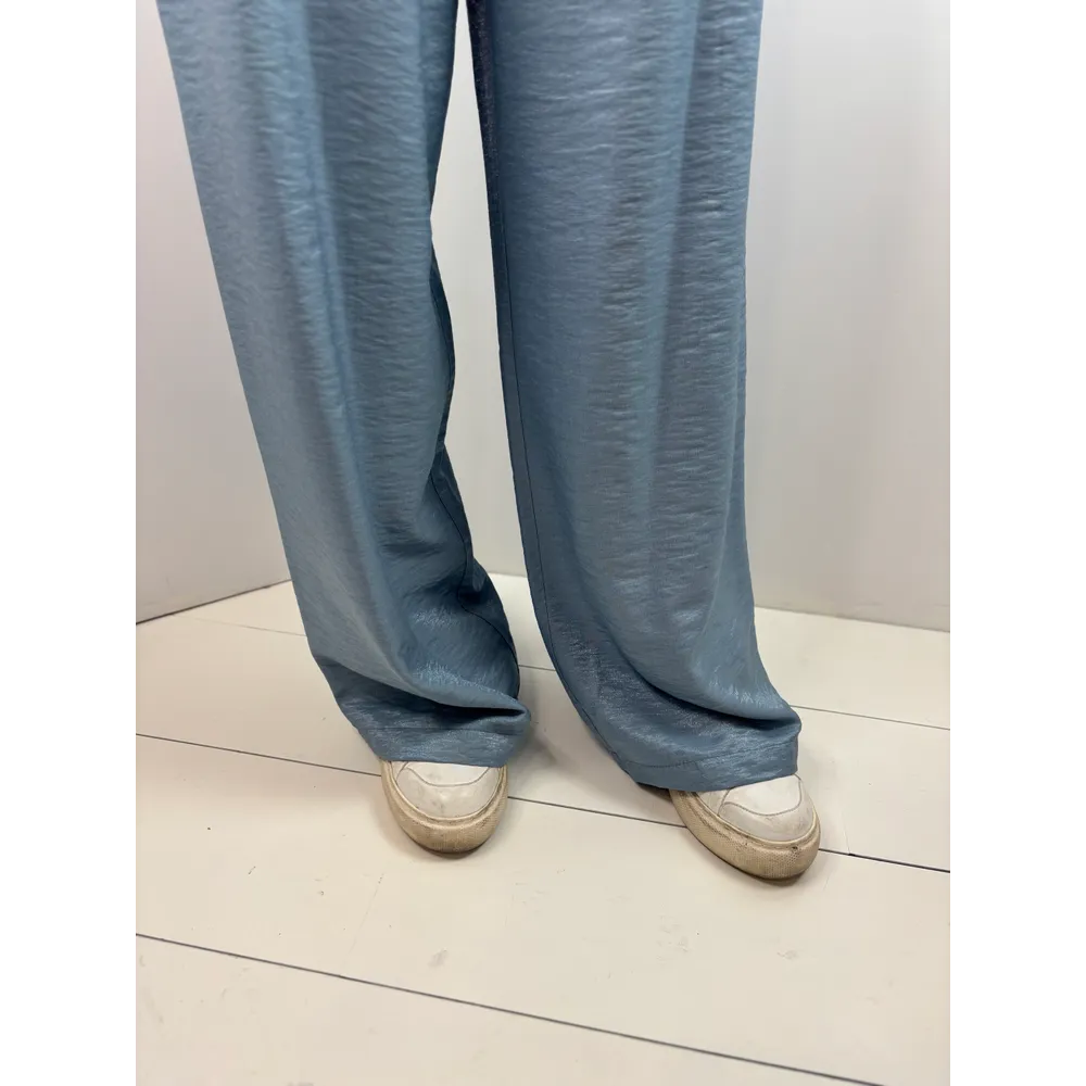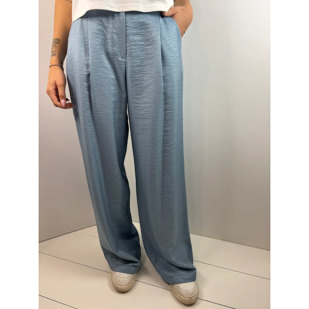 Pantalone palazzo viscosa cangiante, con pinces e tasche.